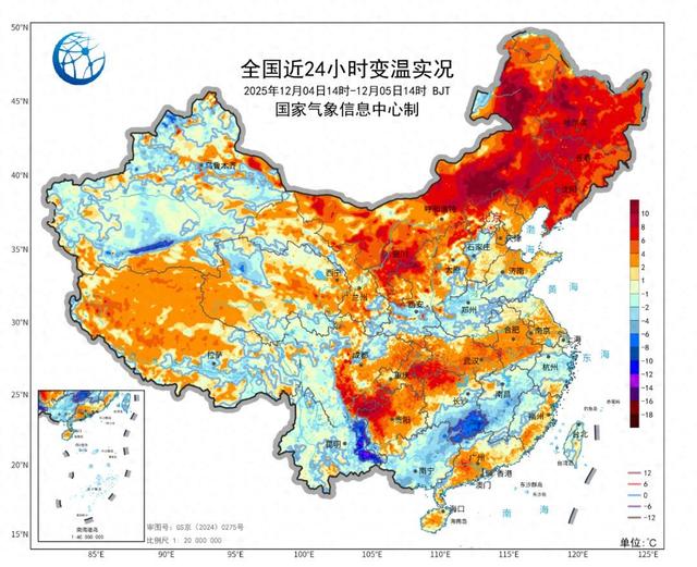 12月初的寒潮影响结束后,我国大部地区气温持续回升中,今天的变温实况图都是大片的暖色调。内蒙古和东北地区升温最明显,部分地区升温超过了10℃。