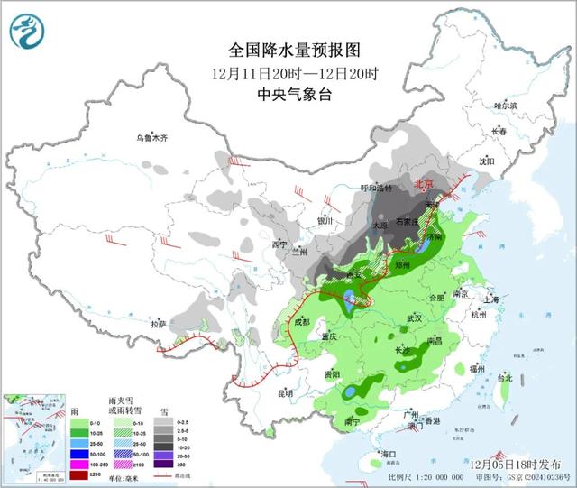 而且除了剧烈的降温,随着水汽条件转好,中东部或将有大范围雨雪过程,像华北等地可能迎来今冬首轮明显降雪过程。