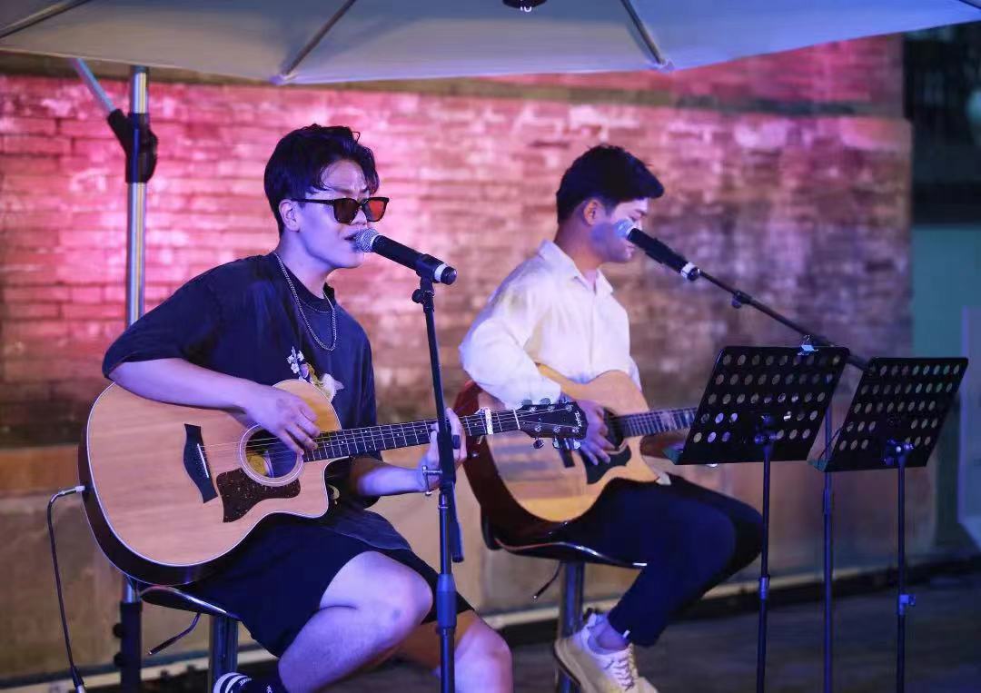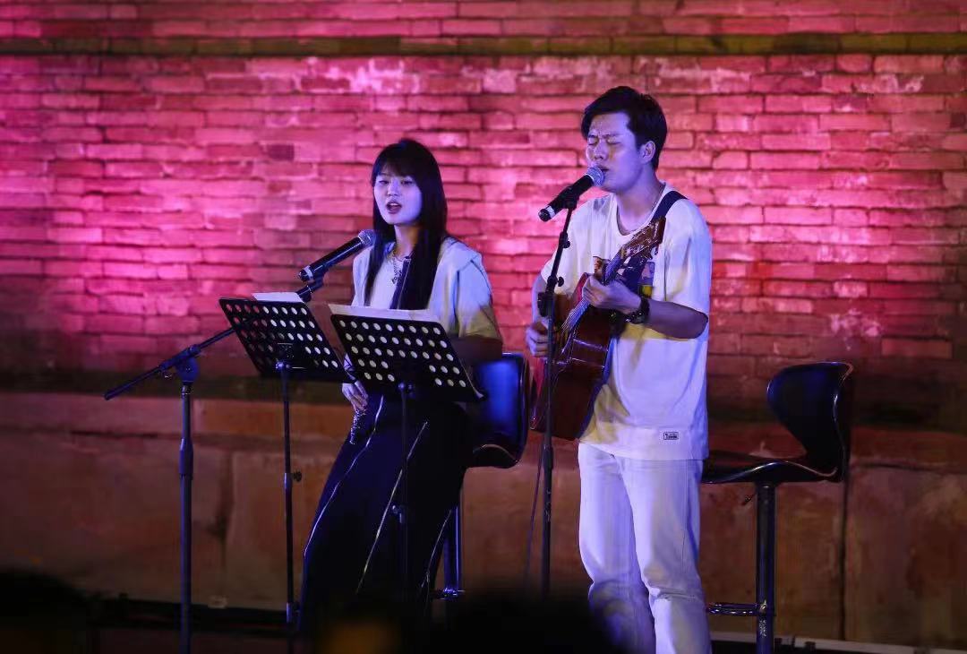 夕阳西下,在古朴静谧的玉光寺里,音乐会在几名青年音乐人现场演奏的音乐声中拉开了序幕。《爱之初体验》《西湖》等摇滚曲目接连唱响,瞬间点燃现场氛围。《稻香》《如愿》《这世界那么多人》《后来》等脍炙人口的流行音乐,让现场观众欢呼不已。原创歌曲《如果还有》《拿什么和你换》用悠扬的旋律、朴实的歌词,将克服困难,终将遇见美好的心愿表达的淋漓尽致,令现场观众听得如痴如醉。