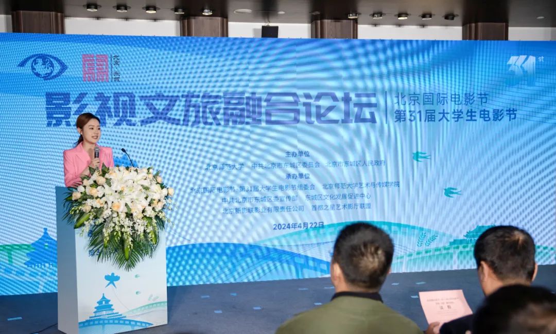 本次论坛由北京师范大学、中共北京市东城区委员会、北京市东城区人民政府共同主办,北京国际电影节·第31届大学生电影节组委会、北京师范大学艺术与传媒学院、中共北京市东城区委宣传部、东城区文化发展促进中心、北京新影联影业有限责任公司、首都之星艺术影厅联盟承办,旨在探讨影视与文旅产业的深度融合,共话城市文化形象推广的新路径。