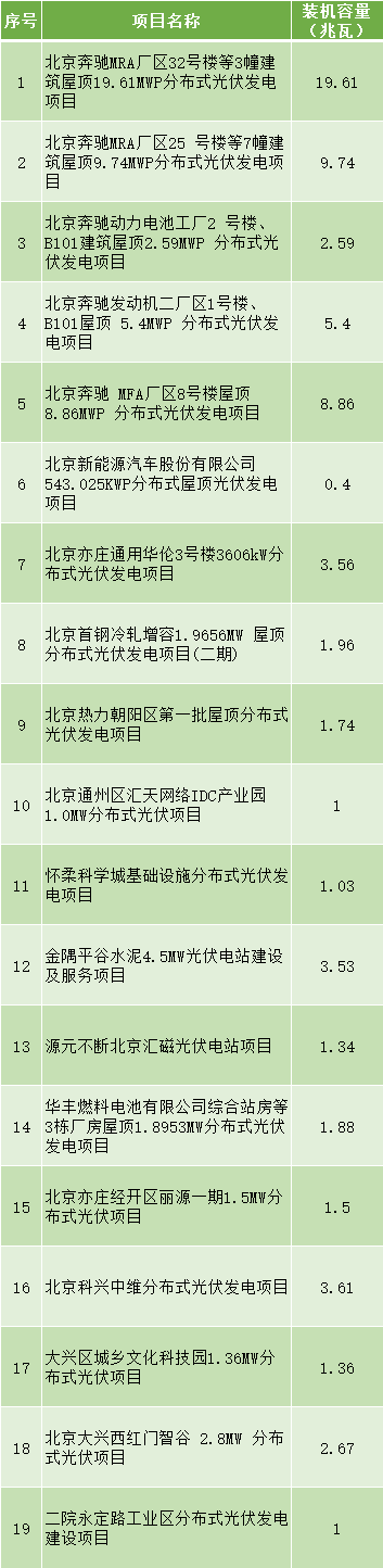 19个光伏发电项目预计年发电量0.87亿千瓦时,折合年节约化石能源消费约2.34万吨标准煤,可进一步提升北京市可再生能源发电装机容量和可再生能源应用比重。