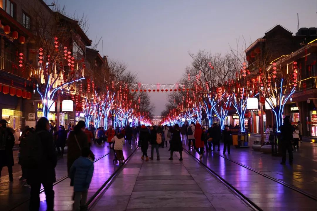 除此之外,王府井、西单、三里屯等商业街区,北京站、北京西站、北京南站等车站周边均装点节日元素,各公园、景区结合庙会、灯会等民俗文化活动也开展靓丽的景观布置,可谓是“鞭炮不点,年味不减”。