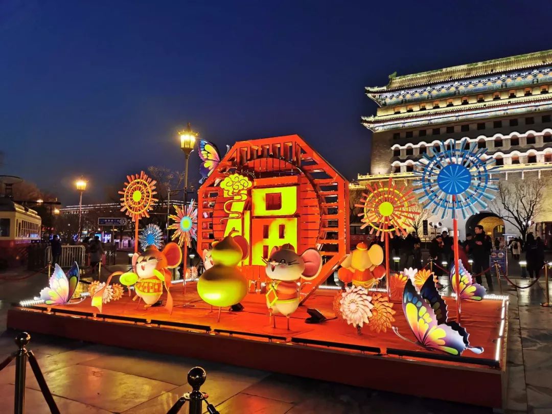 前三门大街、二环路、南北河沿大街等景观照明在节日期间将全面开启。在前门大街步行街北口,我们看到,许多市民和游客被此处的“金鼠纳福”景观小品所吸引,纷纷驻足合影留念。