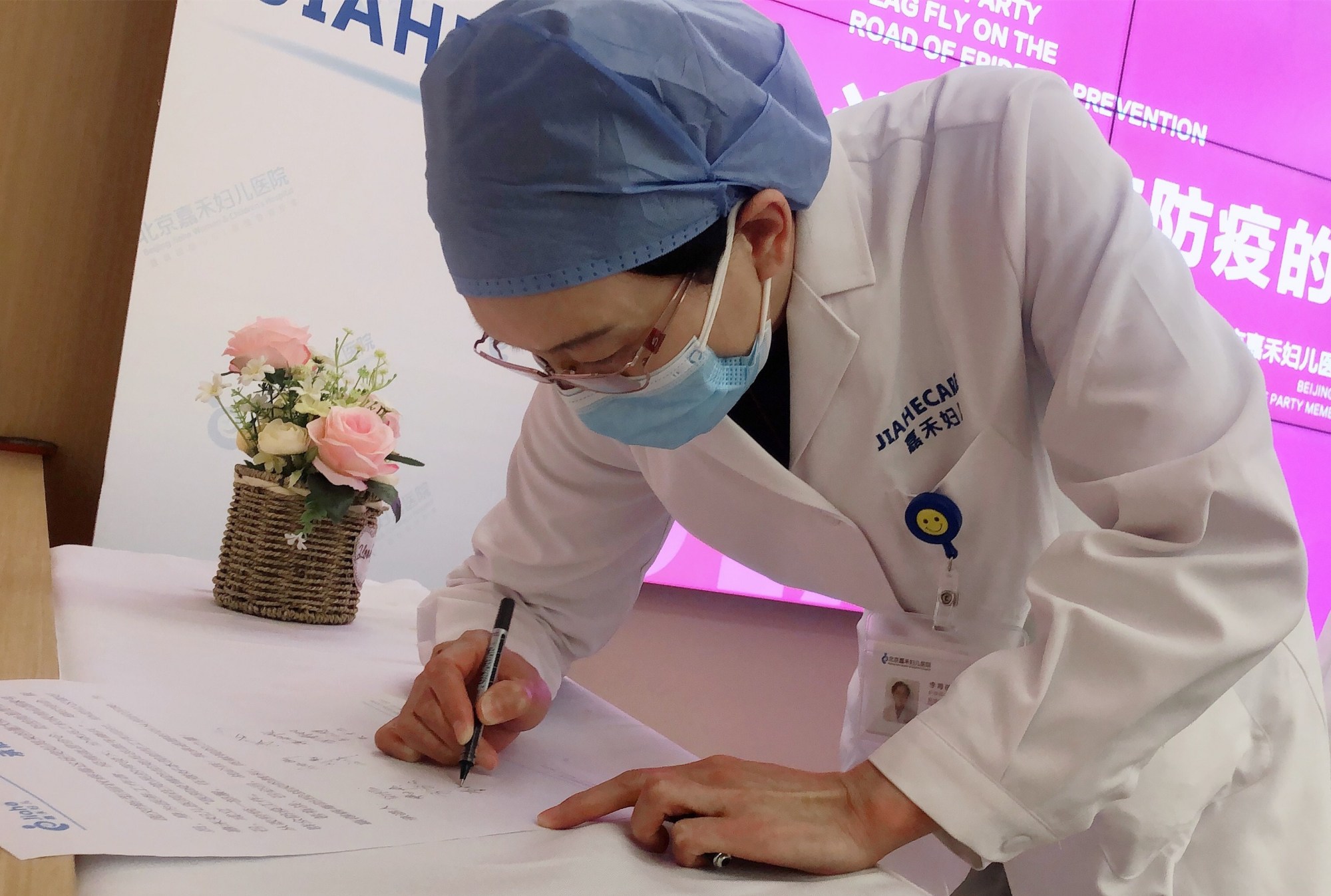 危难当前,作为一名党员,能做的就是有一分热,发一分光。北京嘉禾妇儿医院党支部响应丰台区委的号召,成立“疫情防控党员志愿先锋队”,李海苗主任第一个报名,她在承诺书上郑重地签上自己的名字:“如果国家需要我去武汉、去前线,我一定义无反顾,冲在最前。如果国家让我待命,我就时刻准备,坚守本职工作,守护好每一位母亲、每一个婴儿的健康,带给群众最大的安全与安心,这就是对抗击疫情最大的贡献。”