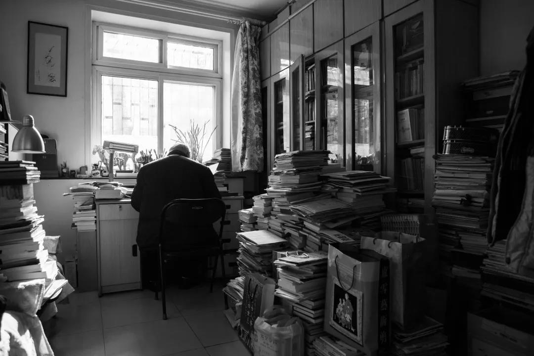 牛汉的书房不大,但整面墙是书架,书架上密密匝匝,大部分是诗集和文学作品。