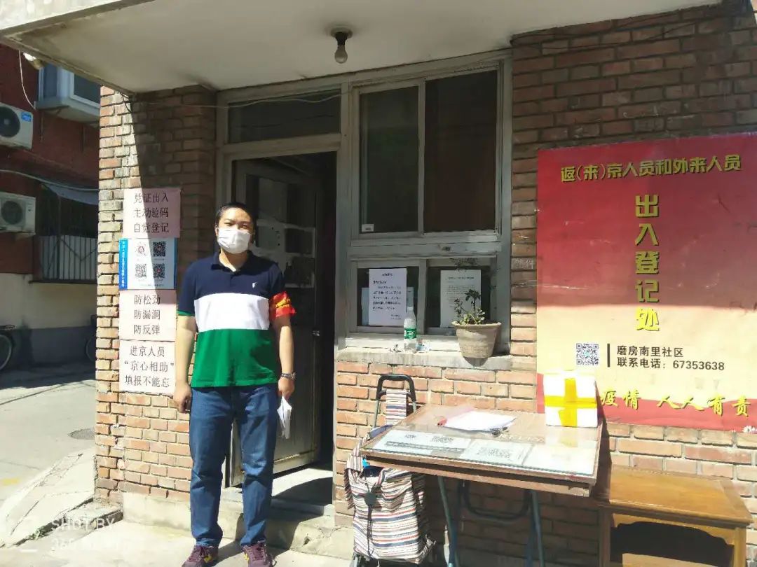 办公室干部到潘家园街道磨房南里社区站岗执勤,协助社区做好进出人员登记、测量体温等工作。