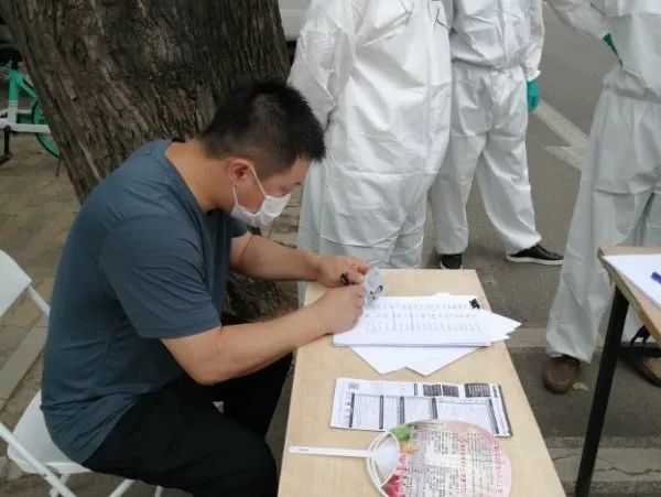 朝阳区委社会工委委员、区民政局副局长张健到朝阳公园核酸检测点开展核酸检测登记、组织协调等工作。