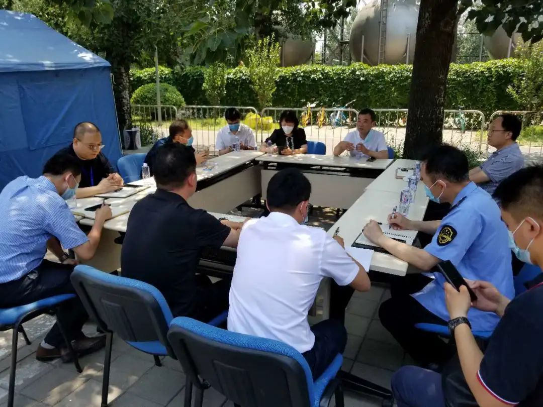 朝阳区委社会工委书记、区民政局局长赵年生在朝阳公园核酸检测点现场召开工作部署会。