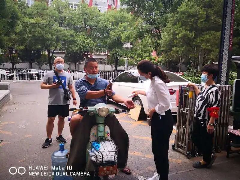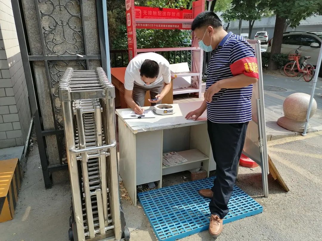 婚姻登记处干部下沉潘家园街道武圣农光社区,检查防疫点位人员到位和防控工作开展情况以及辖区内垃圾督查工作;对楼宇底商餐馆等商铺的进货渠道和测温、消毒等防疫工作进行检查。