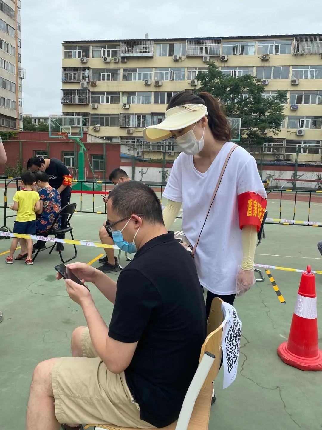 社区服务中心干部在朝阳公园核酸检测点积极开展人员信息登记、现场疏导等工作,从白天到黑夜,不喊苦、不喊累。
