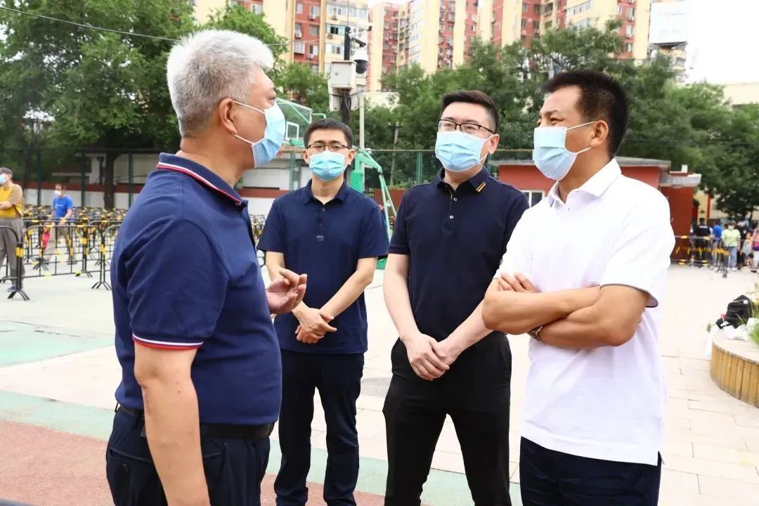朝阳区委社会工委副书记、区民政局副局长徐宏桢陪同区委副书记王旭到朝阳公园核酸检测点指导检查工作。