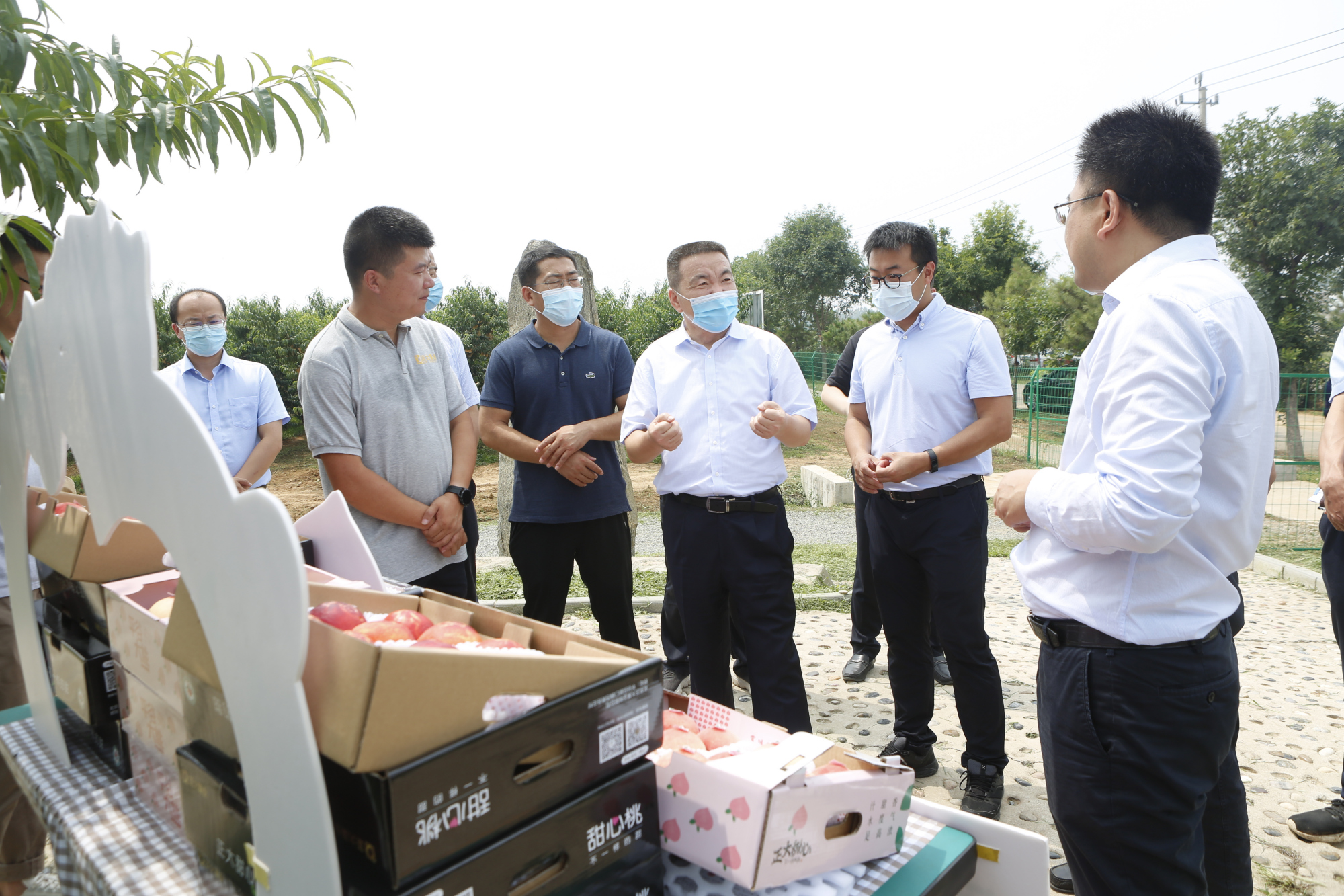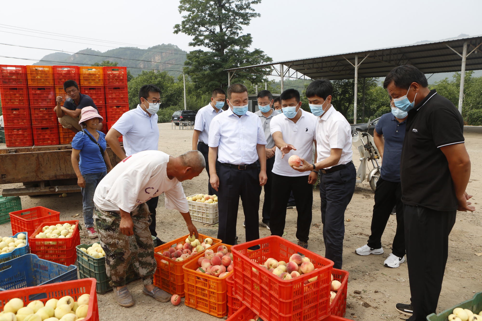 7月21日,区委书记王成国围绕大桃经营销售到大兴庄镇、峪口镇进行专题调研。王成国强调,要发挥好种植示范户带动作用,在土地流转、资金等方面支持示范户发展,通过成立专业合作社推广大桃种植新品种、新技术、新理念,发挥示范户懂技术、有经验、熟悉市场等优势,带动更多果农增收致富。