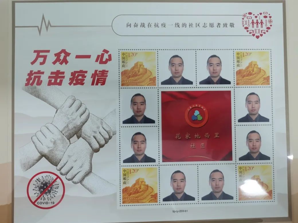 花家地西里社区党委书记李小玲说:“作为社区党委,我们十分感激长期以来参与疫情防控工作的志愿者们,他们付出的太多了,不知道怎么表达我们的心意,于是我们想到定制抗疫邮票向志愿者们致敬,也是一份永久的纪念。”