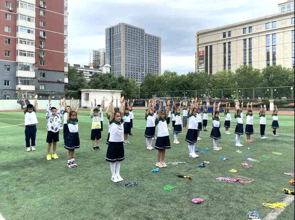 跳绳、跳高......北京市朝阳区花家地实验小学的学生们在阳光下感受着运动带来的快乐。