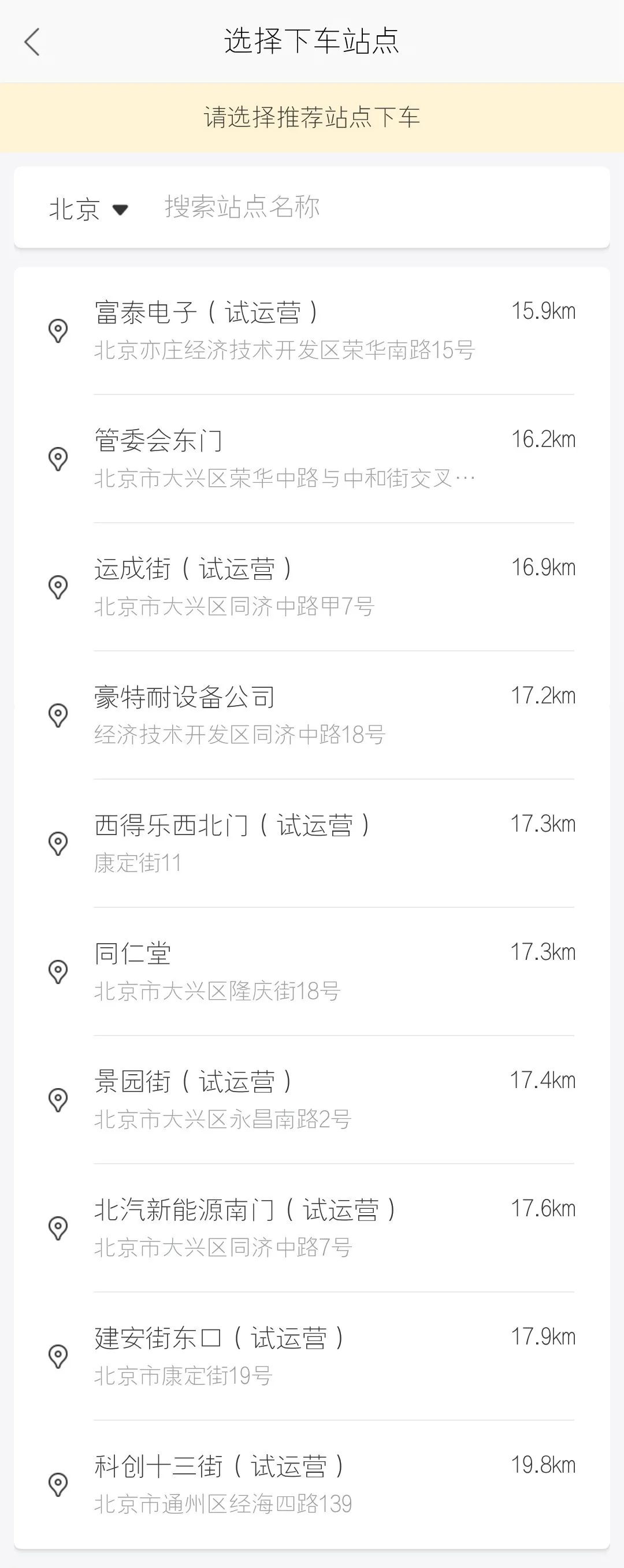 本次在区内全面开放自动驾驶出租车服务后,进入百度地图APP“打车”模块,列表选项里出现了“自动驾驶”,记者尝试点击进入后,可查看推荐上下车站点列表,同仁堂、管委会东门、豪特耐设备公司等区内的数十个站点名称出现在列表中,选择距离叫车位置最近的站点,点击“立即呼叫”一键呼叫,立即有自动驾驶出租车接单,几分钟后便到达选择站点供叫车人员体验。