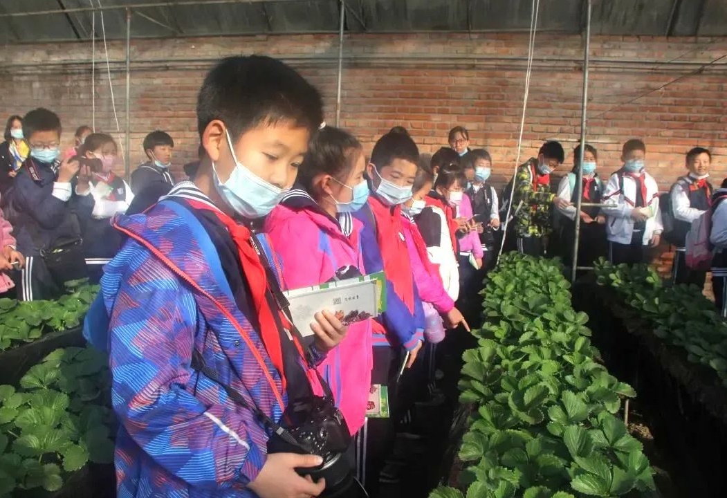 北京市朝阳区实验小学三里屯分校师生来到小汤山国家农业科技园进行了一次有意义的现代农业实践活动。在草莓种植基地中,学生们了解了草莓的主要品种,生长特点和繁殖方法;在互动环节中,学生们通过套圈赢得知识问答机会,不仅赢得了工作人员的好评,还学到了许多农业小常识。