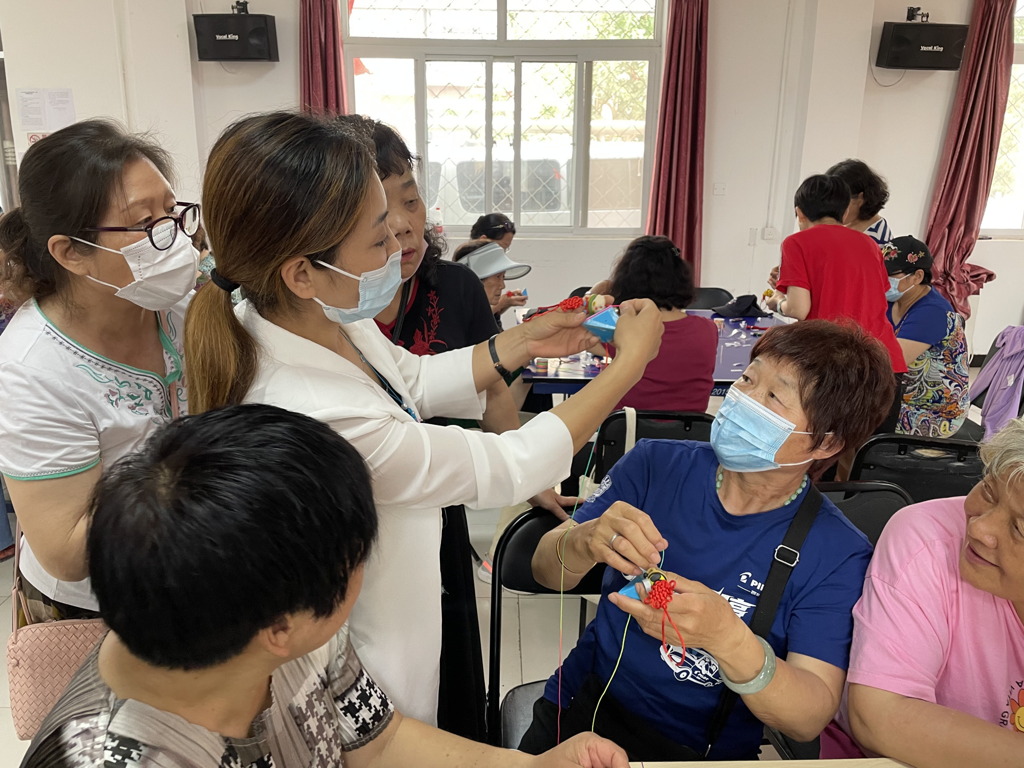 活动现场,老师向居民朋友们介绍了端午节“佩香囊”这一习俗的历史缘由,并耐心讲解香囊制作的具体步骤。随后在老师的指导下,大家开始制作自己的香囊,通过相互交流、分享,一个个五颜六色的香囊很快展现在面前。看着自己亲手制作的香囊,每个人脸上都洋溢着笑容,很有成就感。