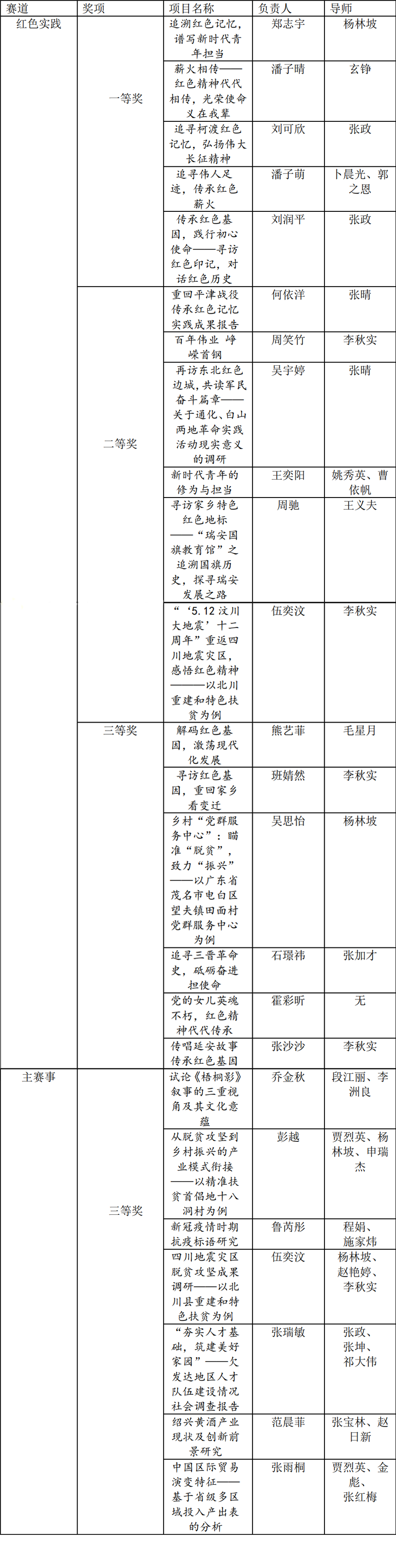近日,第十一届“挑战杯”首都大学生课外学术科技作品竞赛结果公布。在“挑战杯红色专项”活动中,共有5组团队荣获一等奖、6组团队荣获二等奖、6组团队荣获三等奖。在“挑战杯主赛事”活动中,有7组团队荣获三等奖。