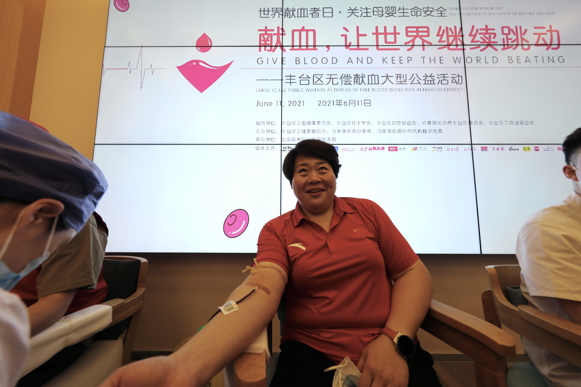 血液是生命的源泉,是人间传递真情的红色纽带。6月14日是世界献血者日,今年的主题是“献血,让世界继续跳动”。近期受新冠肺炎疫情影响,各地献血人数锐减,采血形势非常严峻,大量受疫情影响的患者迫切渴望得到输血救治。特别是一些肿瘤患者、血液病患者、创伤急症患者及高危孕产妇等人群亟需及时足量的血液来延续宝贵的生命。为了充分宣传无偿献血的意义,号召全社会各界人士伸出手臂,用自己的一份爱心挽救更多人的生命,由马家堡街道办事处、马家堡街道时代风帆楼宇党委、丰台区献血办公室共同主办的丰台区无偿献血大型公益活动,于6月11日在北京嘉禾妇儿医院举行。