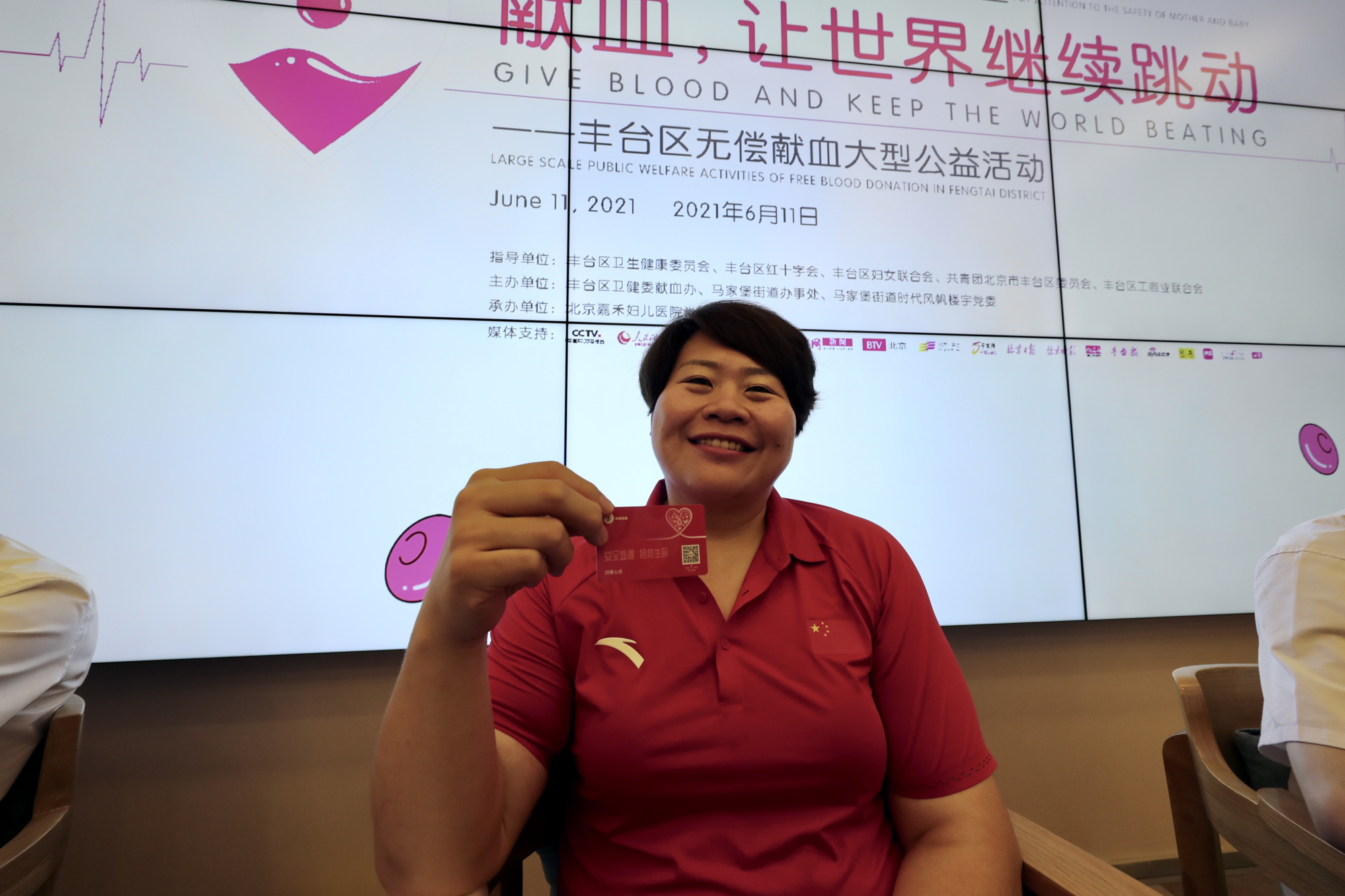 在献血活动的现场,记者还看到了一个熟悉的身影:全国青联常委、奥运冠军佟文也加入到此次无偿献血的公益行动中。作为本次活动的宣传大使,佟文还与来自各行各业的无偿献血志愿者代表100多人,共同组成100的字形合影留念,希望通过这种有特殊意义的行动,弘扬献血救人的奉献精神,让无偿献血活动深入人心,形成全社会广泛支持、参与无偿献血的良好氛围,打造新时期传播社会正能量的一个现象级事件,并向建党100周年献礼。