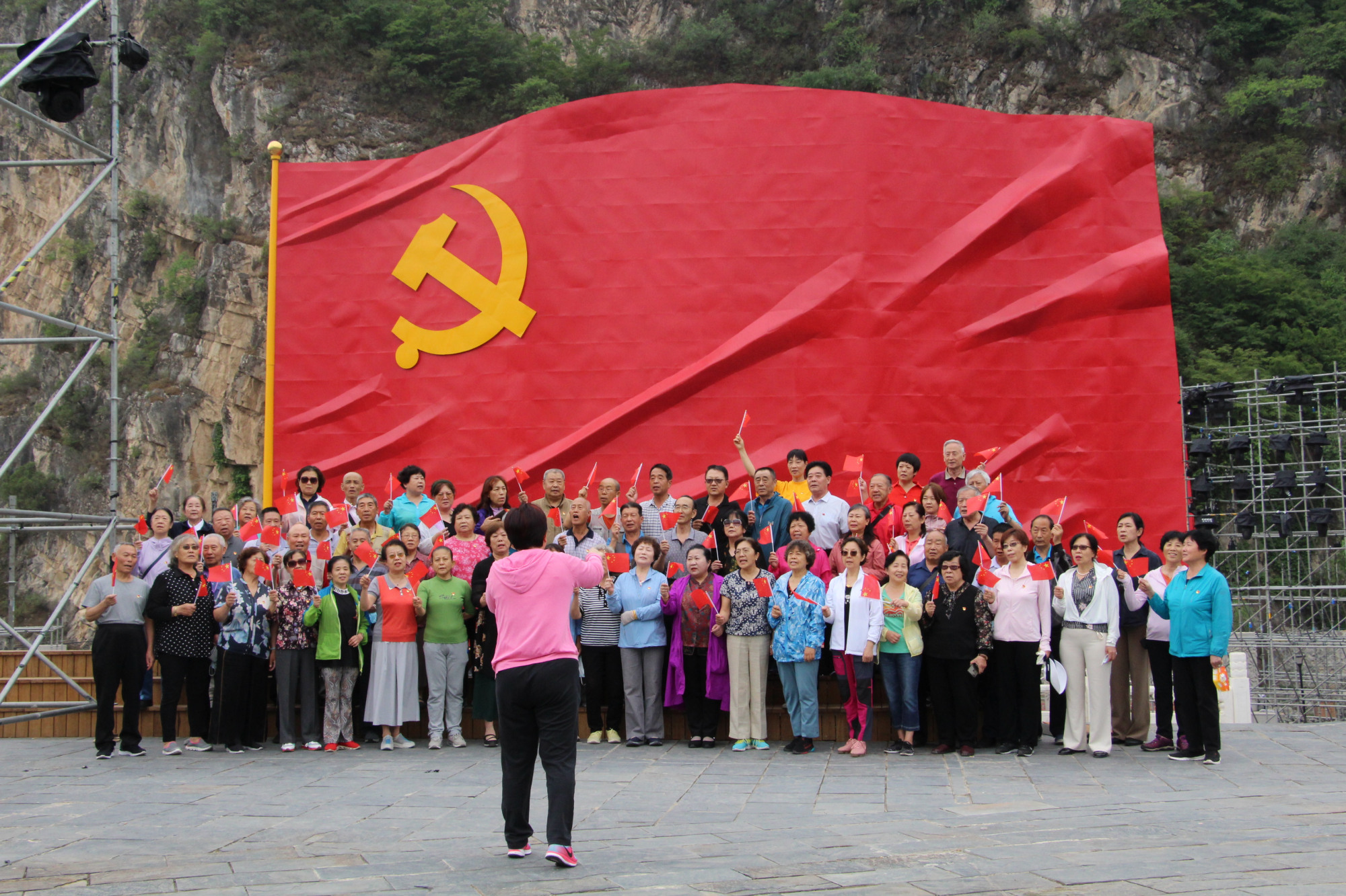 老书记们站在霞云岭红旗广场上,在醒目鲜艳的巨幅党旗前庄严宣誓,重温入党誓词,共同唱响《没有共产党就没有新中国》,用铿锵有力的歌声传递共产党员不变的初心,表达对党的无比热爱和忠诚。