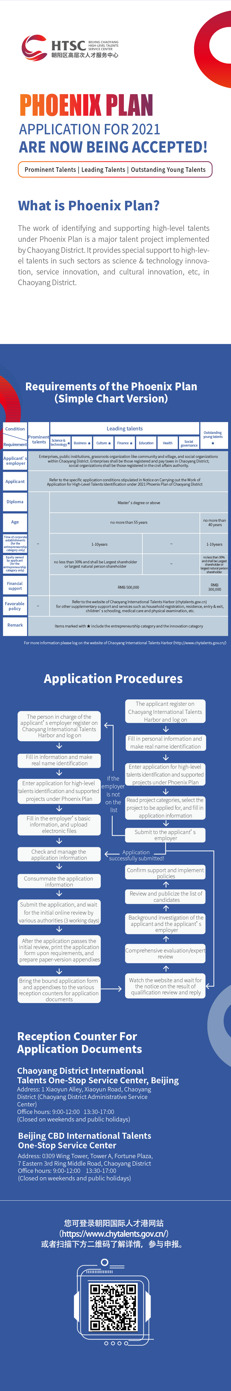 Qualified high-level talents who are going to undertake entrepreneurship and innovation in Chaoyang District could also apply.