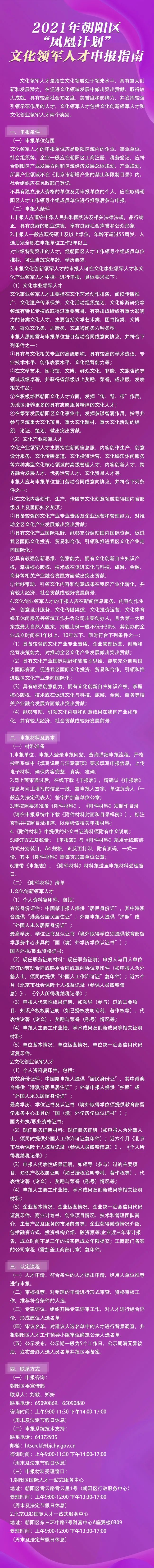 《2021年朝阳区“凤凰计划”文化领军人才申报指南》↓