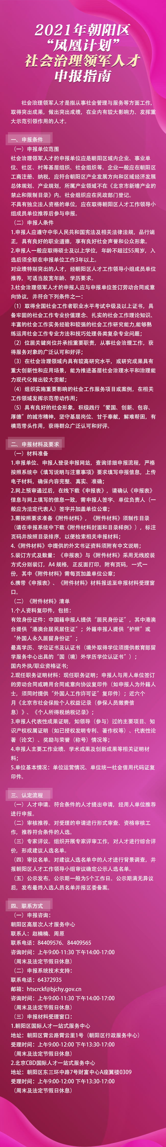 《2021年朝阳区“凤凰计划”社会治理领军人才申报指南》↓