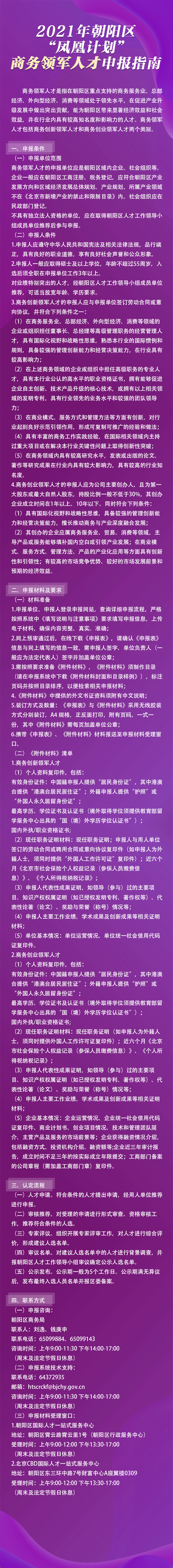 《2021年朝阳区“凤凰计划”商务领军人才申报指南》↓