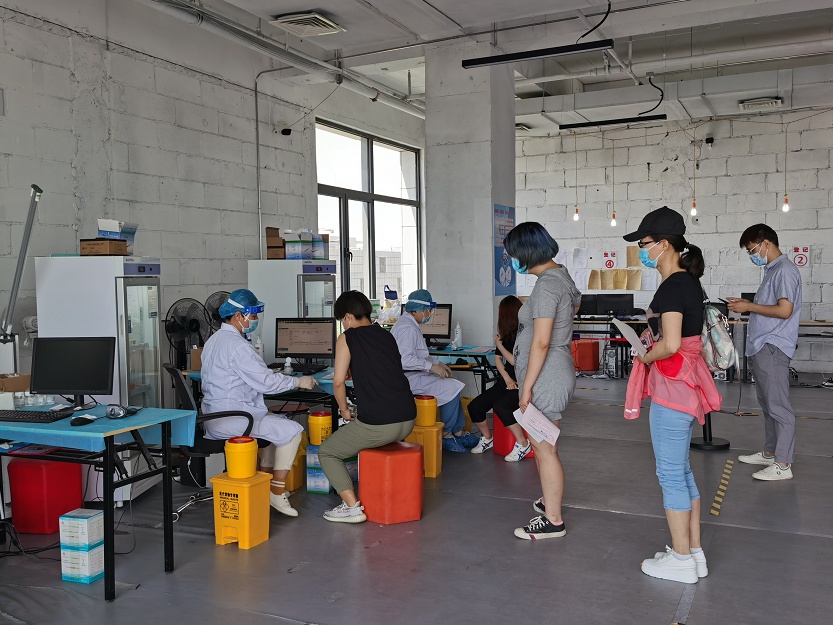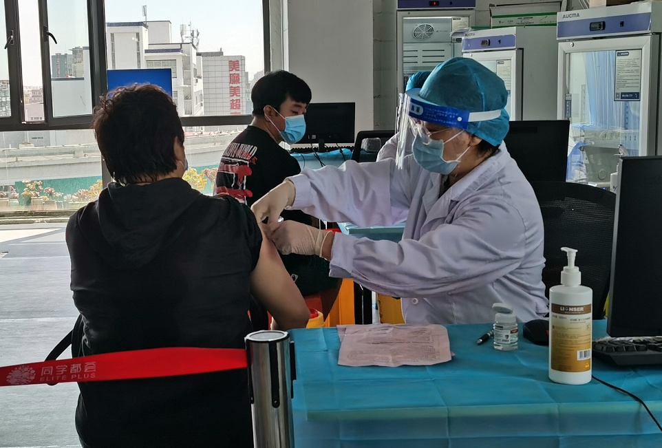 记者在龙泽园街道同学都荟龙观荟学习成长中心疫苗接种点看到,医生有条不紊地为居民接种疫苗,接种工作严格按照登记、告知、接种、留观等流程进行。整个过程高效便利、安全有序。