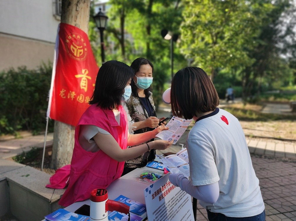 在龙泽园街道龙跃苑二区社区、龙锦苑六区社区广场,社区“两委”为路过社区居民发放接种新冠疫苗宣传册,为居民讲解疫苗的作用和注意事项,告知居民疫苗接种点、接种时间等详细内容,并通过入户的形式进行宣传,做到宣传到户、人人知晓。