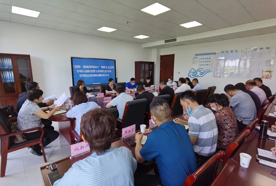 会议对“清朗·港城净网2021”网络生态治理专项行动做了进一步部署;调度了互联网信息内容管理执法工作,通报了2021年以来互联网信息内容管理执法工作情况;市“扫黄打非”领导小组办公室、公安局、抚宁区委网信办分别作了交流发言。