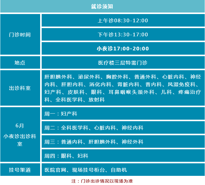 增加小夜诊后,特需门诊将实现工作日全天候覆盖(周一至周五08:00-20:00),出诊科室覆盖10余个重点专科,出诊医师均为副主任医师及以上,充分满足民众多元化、差异化需求。