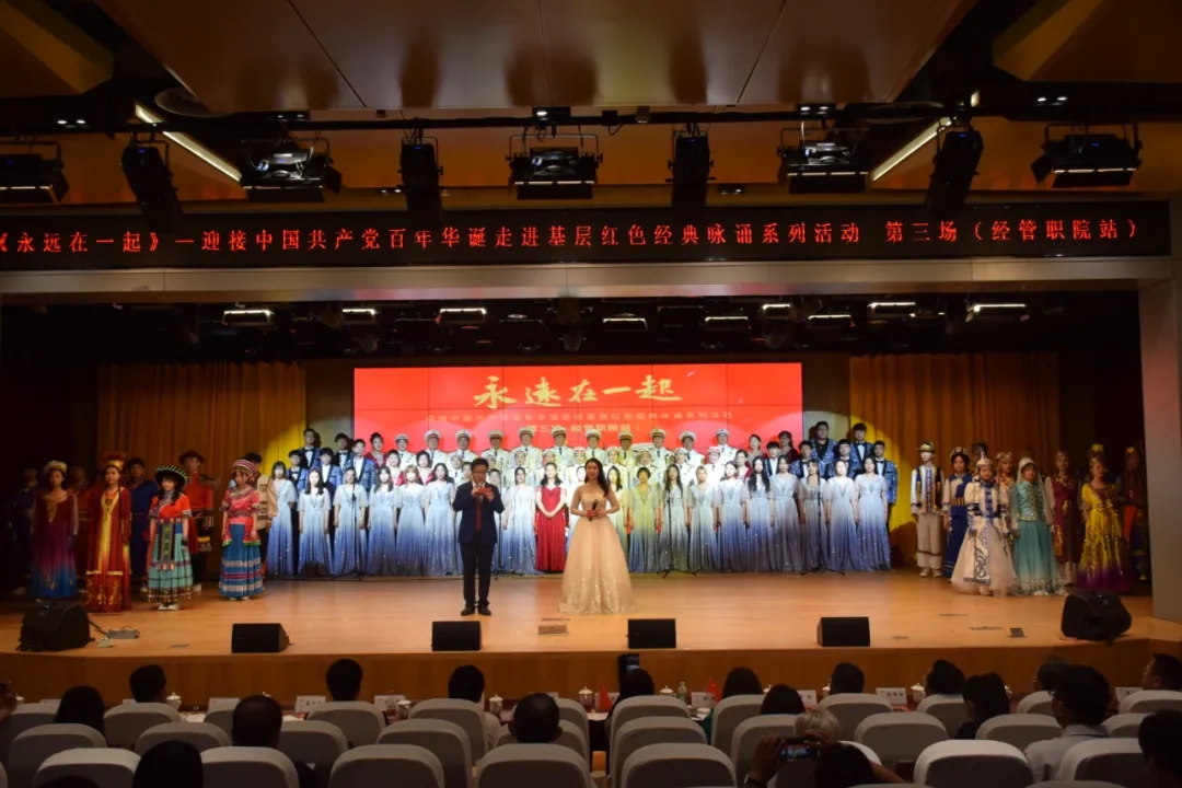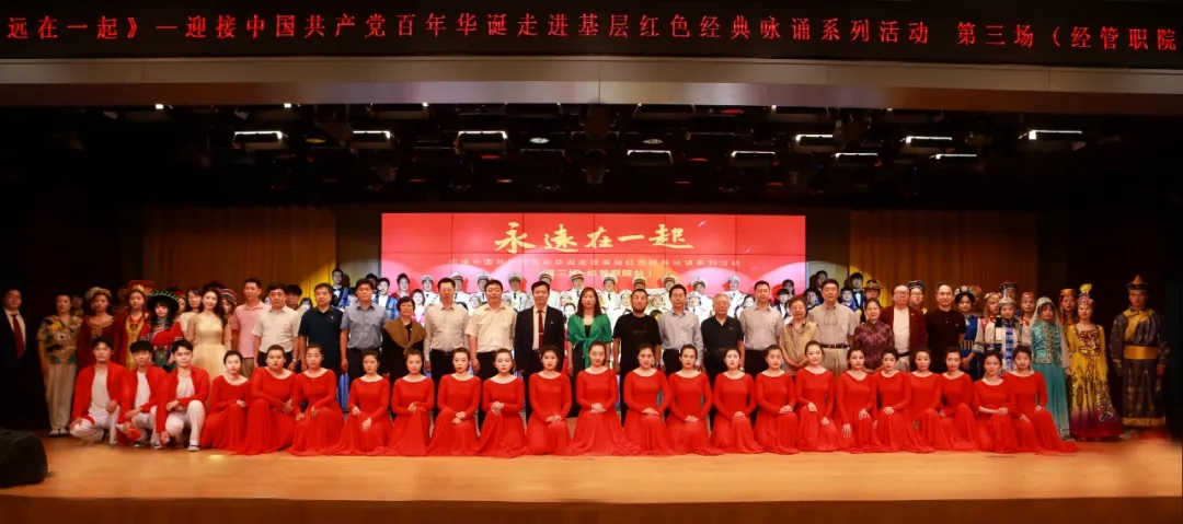 为迎接中国共产党百年华诞,6月16日,中共北京市委党校党史党建教研部、北京一路畅通传媒广告有限公司、中共北京市朝阳区委党校等联合主办“迎接中国共产党百年华诞走进基层红色经典咏诵系列活动第三场——《永远在一起》主题演出活动”在北京经济管理职业学院举行。