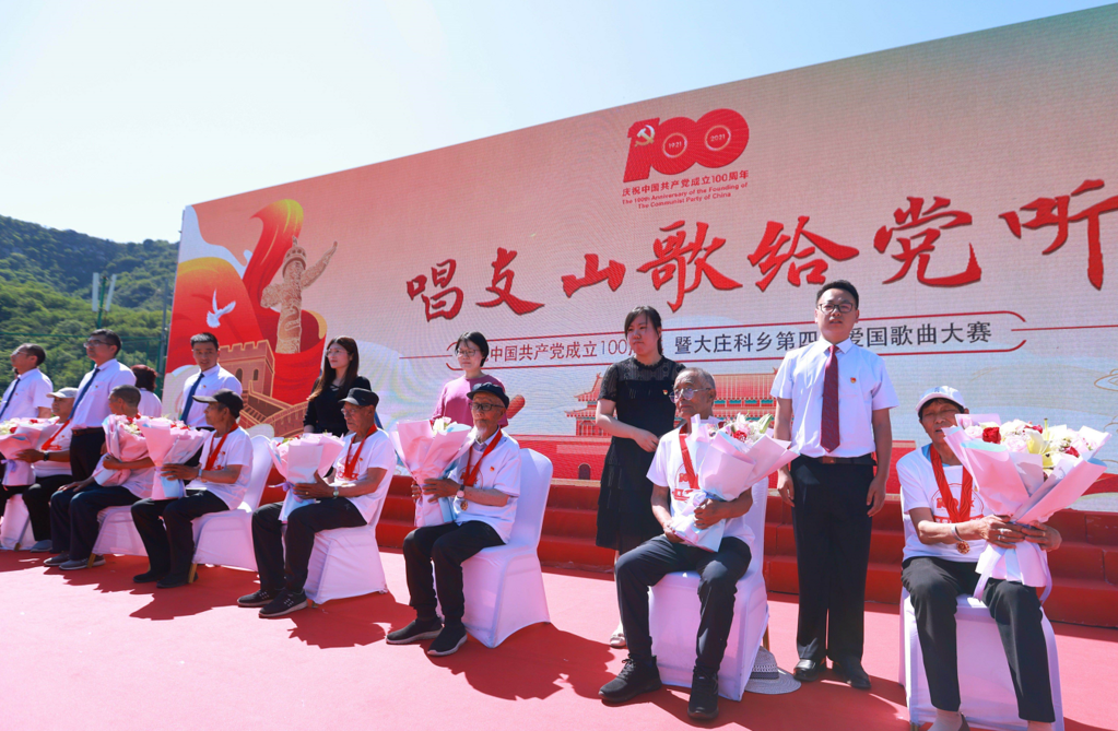 在比赛中,获得第一名的是大庄科乡的东二道河村。大庄科乡东二道河村党支部书记郭双柱说:“我们前期进行了很长时间的准备,为的就是今天能够把我们对党最强烈的热爱唱出来,希望我们的党越来越好,我们永远跟党走!”