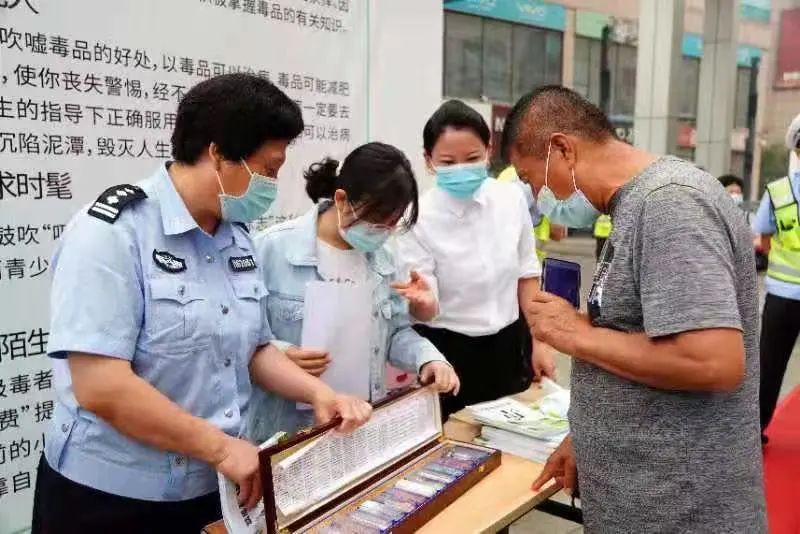 活动会场划分了讲解区和宣传互动区,其中,宣传互动区通过仿真毒品,让群众直观的了解毒品的类型;同时设置了“互动答题区”,通过一问一抢答的形式,充分调动群众参与禁毒活动的积极性;讲解区中,禁毒办、卫健委、妇联、司法局等单位工作人员通过禁毒知识手册、禁毒知识折页、推广禁毒公众号等方式,多角度为群众讲解禁毒知识及法律法规,进一步增强了广大群众的防毒拒毒意识。