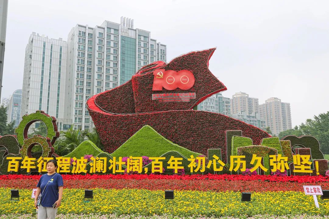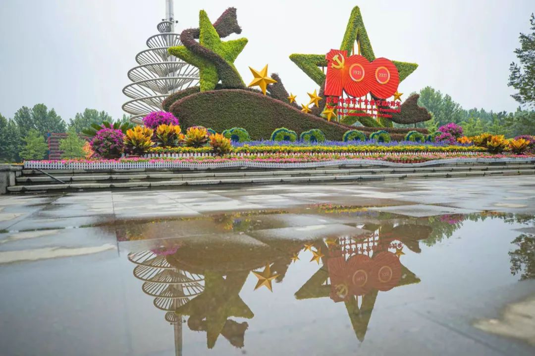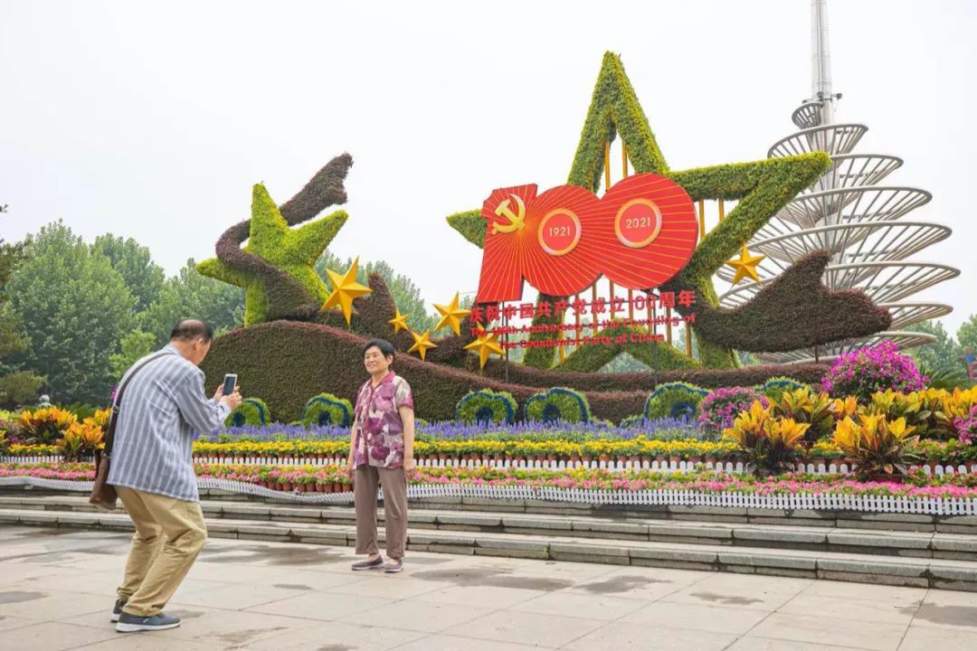 造型庄重、色彩斑斓,生态功能凸显且富有美好寓意。近日,北京经开区以“庆祝建党100周年”为主题的环境布置正式完工。