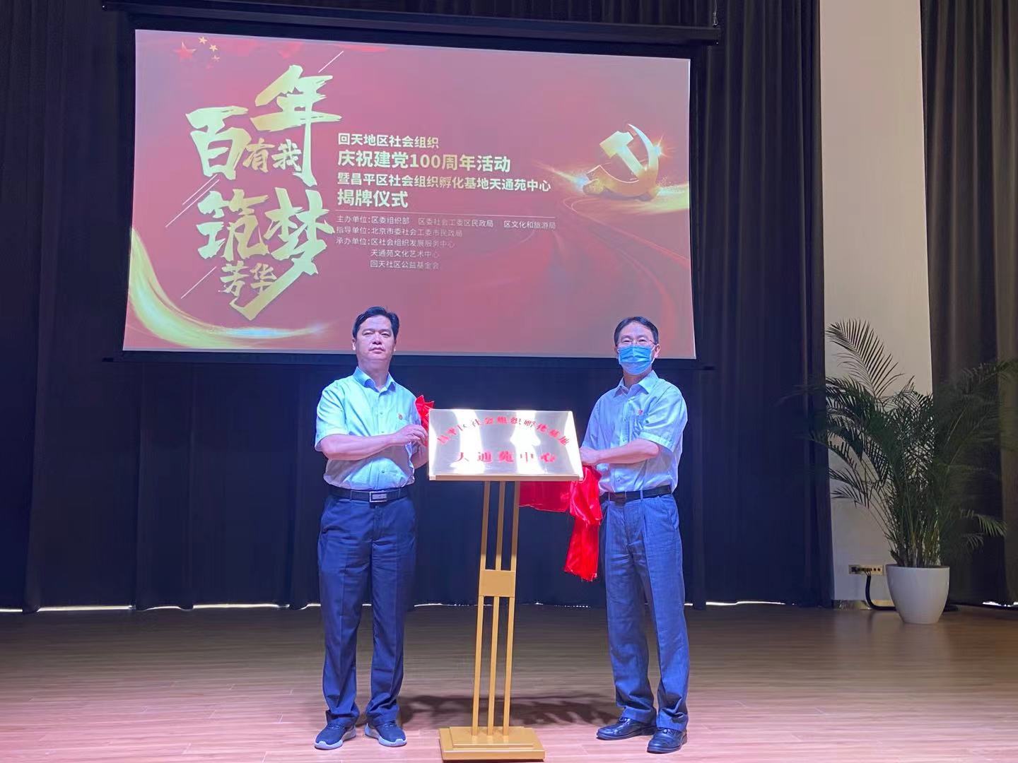 6月24日,“百年有我,筑梦芳华”回天地区社会组织庆祝中国共产党成立100周年活动暨昌平区社会组织孵化基地天通苑中心揭牌仪式,在天通苑文化艺术中心举行。