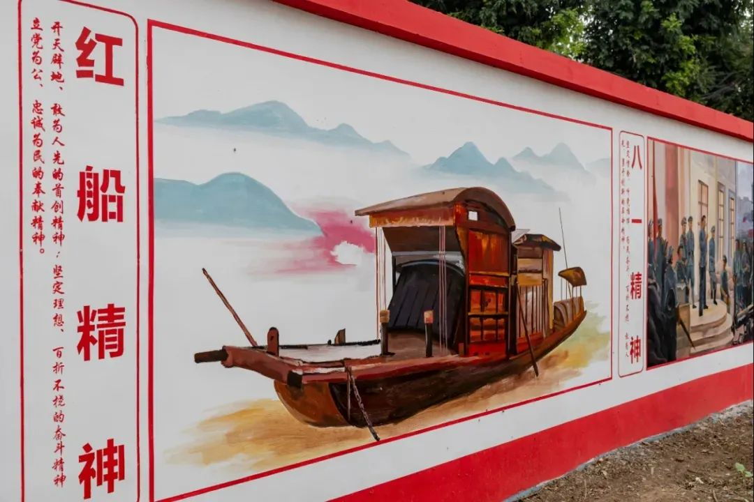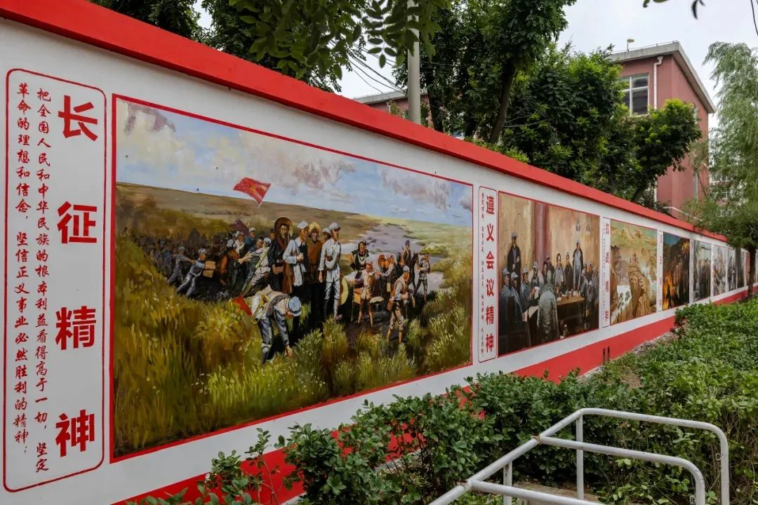 红色历史手绘墙全长100米,昌艺园社区作为老旧小区,在此之前它只是一面灰白普通的长墙,由于时间推移、风吹雨淋,不少墙面产生剥落,与社区内温馨的氛围格格不入。“了解红色岁月、聆听奉献故事,常来这里转一转!”社区党支部书记兼居委会主任蔡玉清主动当起“导游”,顺其指点记者看到,道路两侧墙面分别是党的不同时期的以及从中共一大到中共十九大会议的生动彩绘,每一幅手绘图代表一段重要历史节点,从五四运动娓娓诉说到今天。