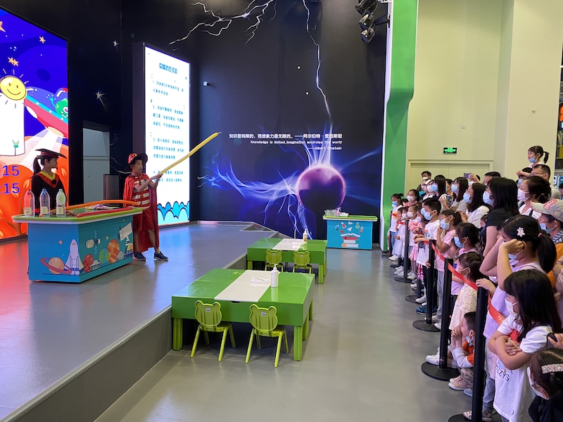 除了在展厅的日常服务,小志愿者还可参加很多有意义的活动,例如参加中科馆大型夜场活动“科学之夜”的科学秀表演、大型科幻童话剧《皮皮的火星梦》全国巡演等,优秀小志愿者代表更是参与亚太科学中心(ASPAC)年会、全国科普日北京主场活动等多项重大科普活动。