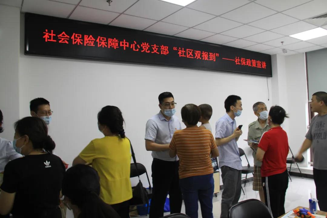 为积极推进党史学习教育深入开展,经开区社会保险保障中心党支部将“我为群众办实事”实践活动与在职党员“双报到”工作紧密结合,6月24日,由中心党支部副书记姜立艳同志带队,组织中心社会保险处、医疗保险处党员干部到通泰文园社区报到,引导广大在职党员从办公室走向社区基层党组织,开展志愿服务活动、进行医保社保政策宣传解读,做到工作在单位、活动在社区、奉献双岗位,在服务群众中践行初心使命。