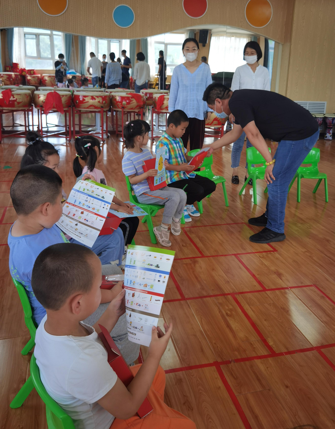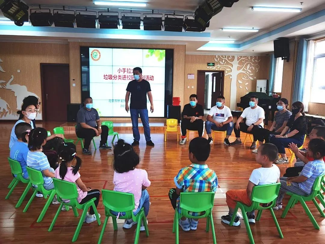 宝山镇生态办主任翟国明首先向老师和幼儿们详细介绍了《北京市生活垃圾管理条例》及垃圾分类标准,老师们和小朋友们认真聆听学习。接下来宝山镇工作人员及幼儿园老师,为小朋友们举办了一场生动活泼的垃圾分类抢答赛。