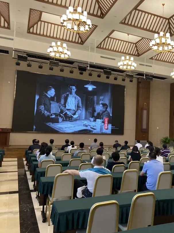 一行人观看了电影《红色背篓》。电影讲述了以王砚香等共产党员为原型的黄山店分销社职工,不畏惧酷暑严寒,跋涉于崇山峻岭,为山区不便下山采买的人民群众送货、收购农副产品,与群众心连心的感人故事。