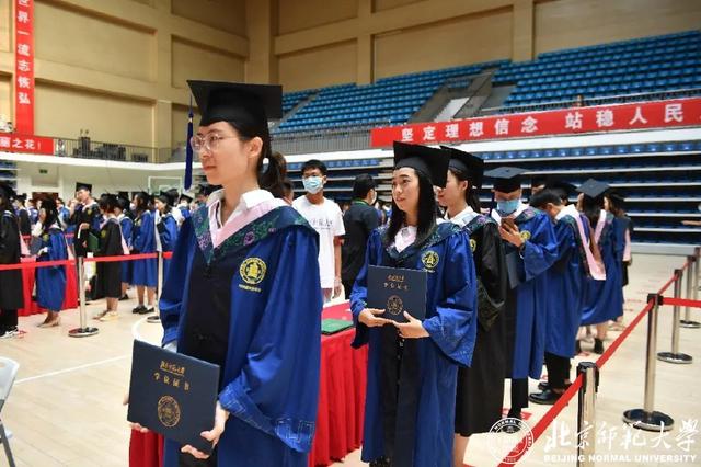 7月11日上午,北京师范大学2020届毕业生学位授予仪式在邱季端体育馆举行。校党委书记程建平,校长董奇,党委副书记、纪委书记孙红培,副校长陈丽,党委副书记李晓兵,以及校学位评定委员会委员代表、文学院李国英,教育学部刘宝存,物理学系包景东,共同为1700余名2020届毕业生授予学位。