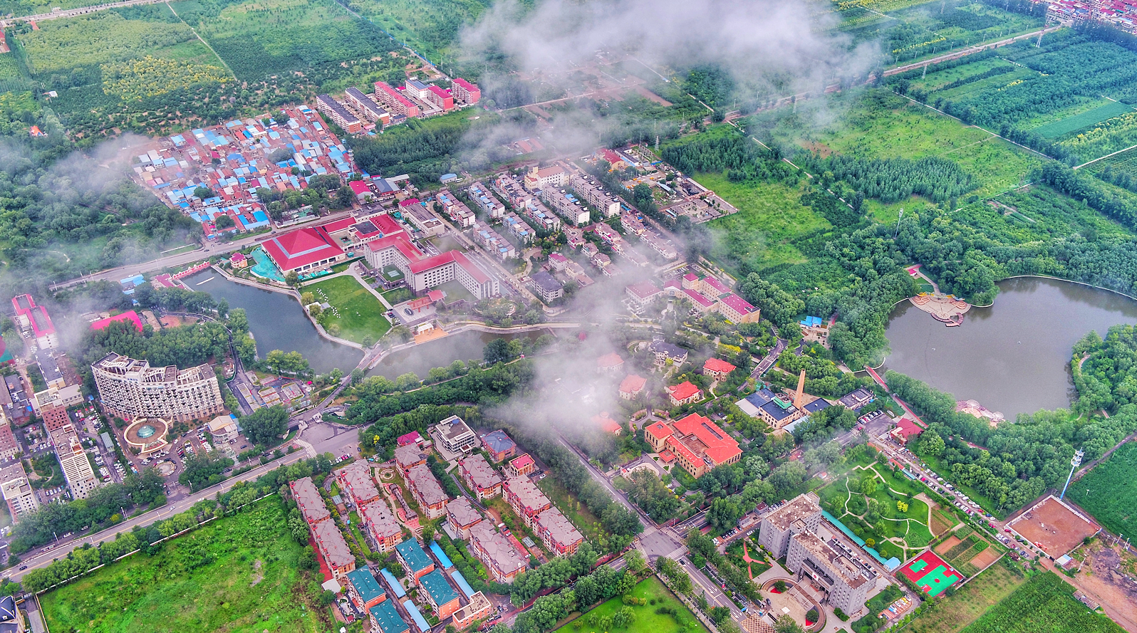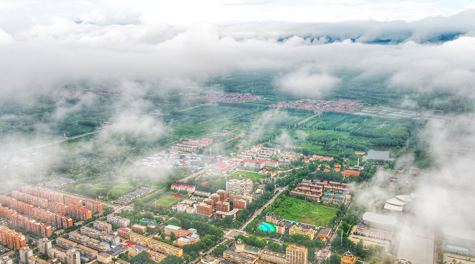 一场连绵的大雨过后,13日早上一起来,延庆城区白色的云雾缭绕,宛若仙境。