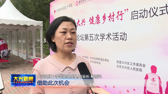 大兴区红十字会党组成员副会长郗丽凤说:“今天我们举办的“博爱在大兴 健康乡村行”活动,是在北京市红十字会开展“博爱在京城 健康乡村行”活动之后开展的第一个区级的项目,也是想借助此次机会,把更多的“人道 博爱 奉献”的红十字文化带到群众家门口,精准化的为更多的群众服务。”