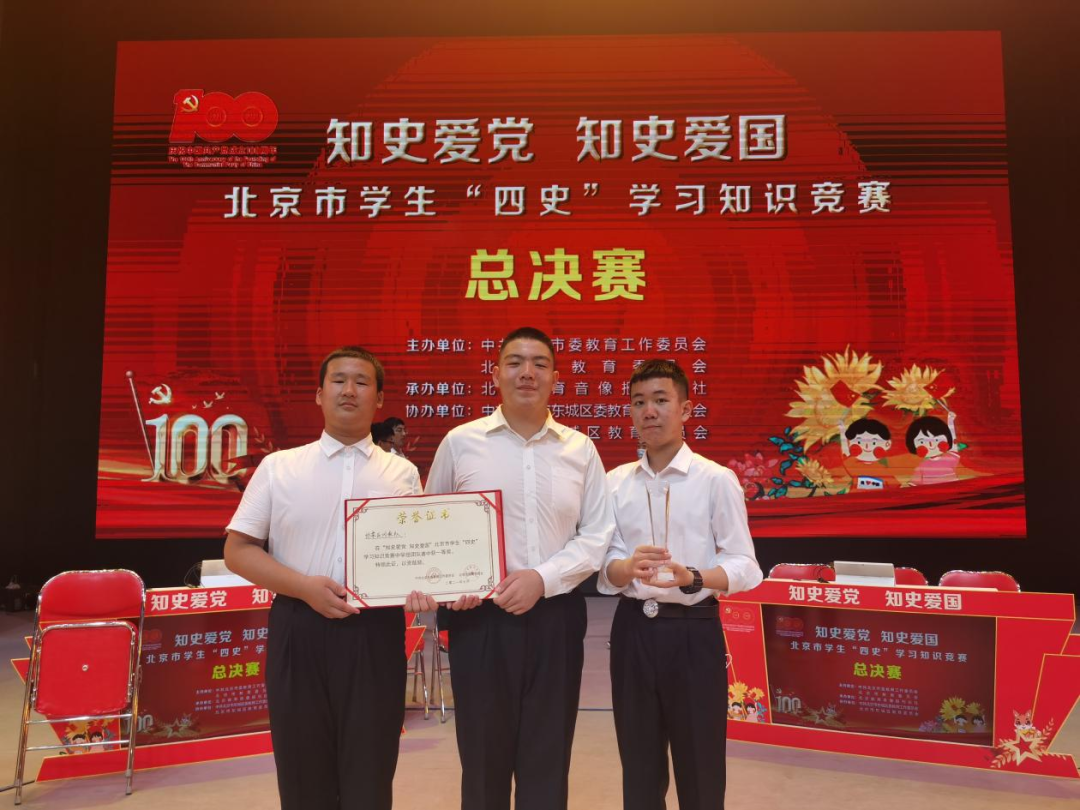 在北京市中学生“四史”知识竞赛总决赛中,我们取得了第一名的好成绩。比赛刚开始的时候,面对高年级的各区优秀选手有些紧张,但是我们有着“破釜沉舟,百二秦关终归楚”“卧薪尝胆,三千越甲可吞吴”的信念。在抢答题环节,我们一举夺下九十分。听到场上的喝彩声,我们参赛队员彼此的脸上露出了会心的一笑,那是自信的光芒和团结的力量!这场比赛不仅丰富了我们的党史知识,还锻炼了我们的能力,更让我们感受到了青年的责任与担当。未来,我们将继续努力,用汗水浇灌收获,以实干笃定前行,只争朝夕,不负韶华!