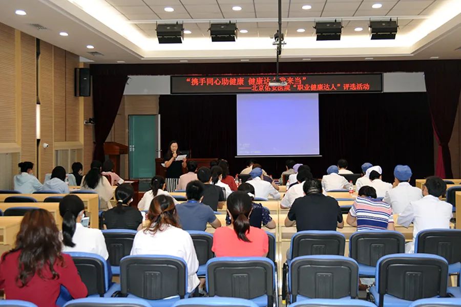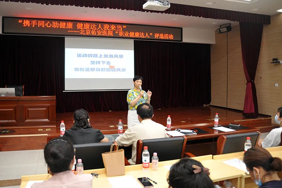 为积极响应北京市卫生健康委员会关于开展争做“职业健康达人”的号召,2021年7月13日下午,来自北京佑安医院15个分会的17名选手参加了院工会首届“携手同心助健康•健康达人我来当”争做职业健康达人活动,工会主席刘香玉、副主席仇淑华莅临活动现场并与其他15名分会代表共同担任评委。