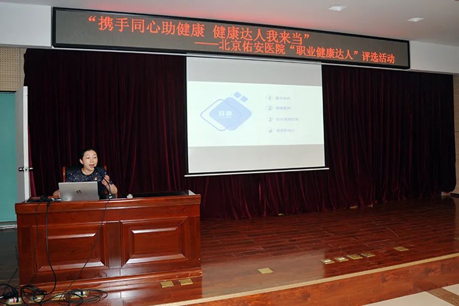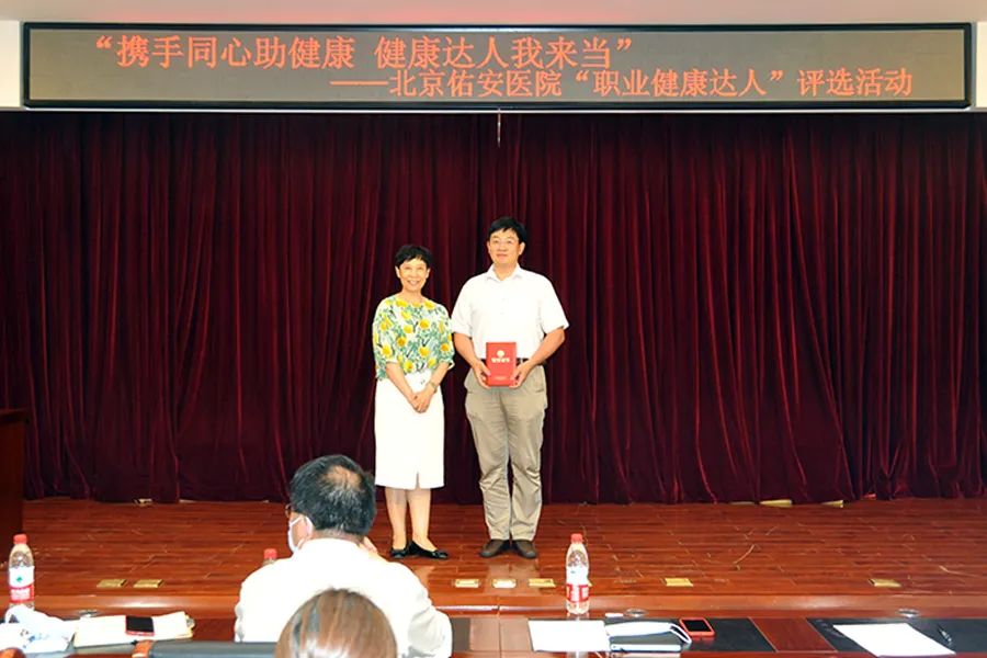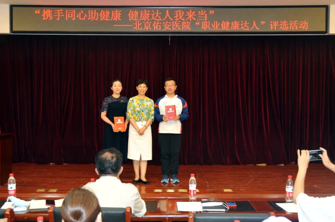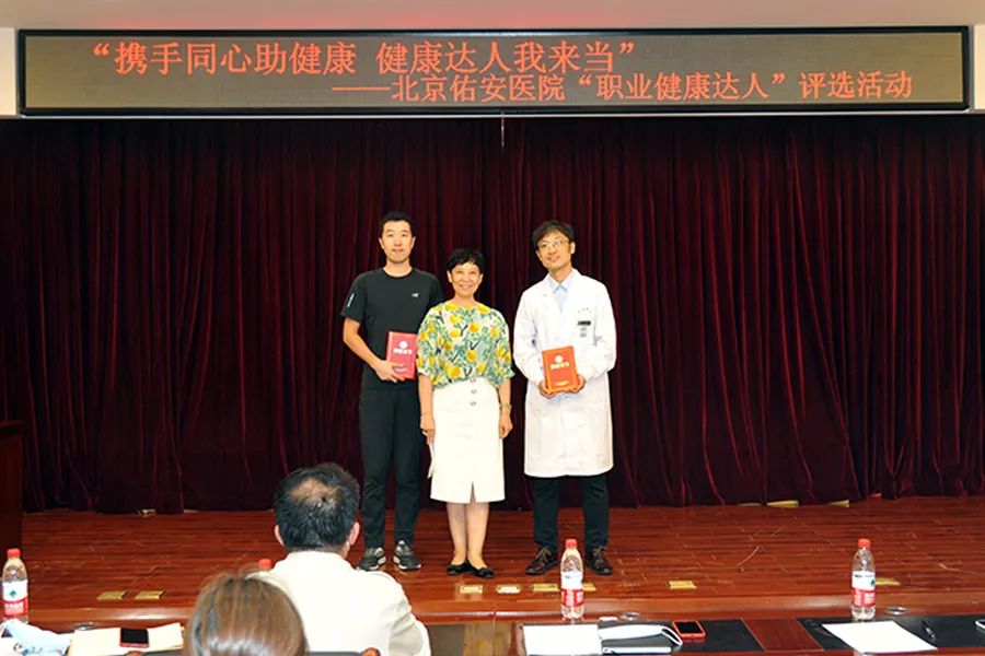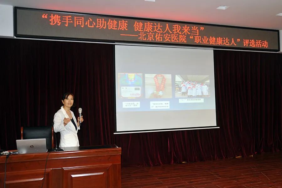 在这次评选中,佑安医院工会精心策划,选手们用图文并茂的形式展示了自己争做“职业健康达人” 的故事,讲述了自己参与健康管理,积极影响和带动身边人健康生活、健康工作的切身体会,事迹感动了评委,也感动了观众。这次活动是大家的运动才能与拼搏精神的展示,体现了佑安人健康向上、奋发图强的精神风貌。活动最终评选出一等奖1名、二等奖2名、三等奖3名、健康传播奖11名。