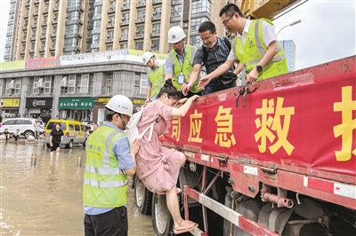 22日,新区央企中建六局建设发展有限公司组织抢险应急救援队共计106人,奔赴河南巩义市米河镇开展抢险救援工作,为当地早日恢复正常生产贡献力量。公司相关负责人告诉记者,救援队伍专门调配了2台挖掘机、4台铲车、2台污水泵,全力开展清除淤泥及排除道路障碍工作,并为当地受灾群众送去200米水袋,600箱矿泉水、100箱面包、200箱火腿肠、50箱榨菜、50箱雨衣、100箱雨靴,为抗洪抢险提供后勤保障。